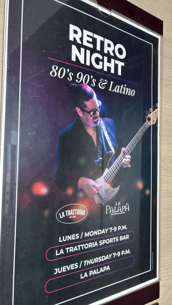 The Royal Cancun – Mondays at 7pm La Trattoria – Thursdays at 7pm La Palapa